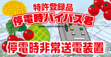 停電時バイパス君を使用したい設備に接続しておくことで、突然の停電時でもビニールハウスの既設設備を普段通り使うことが出来、大切な農作物を守ることができます。